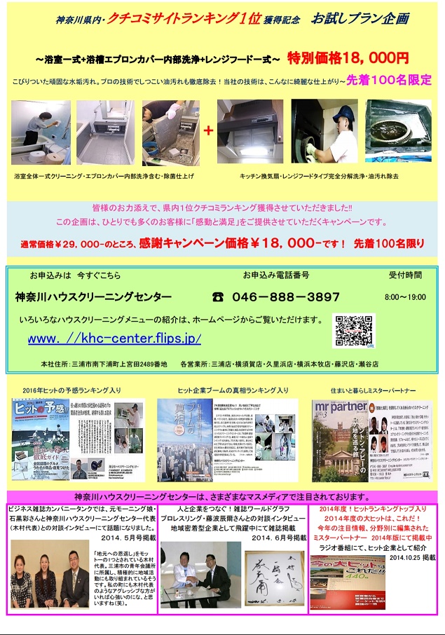神奈川ハウスクリーニングセンターでは、ただいまお得なキャンペーンを開催中です。