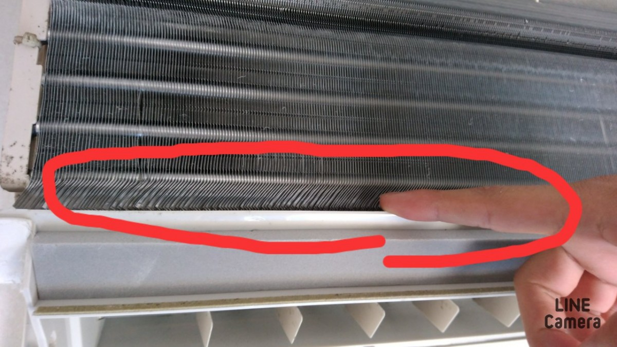 このアルミフィン部分を伝わって、水がパネルに伝わって室内に排出されてしまっています。