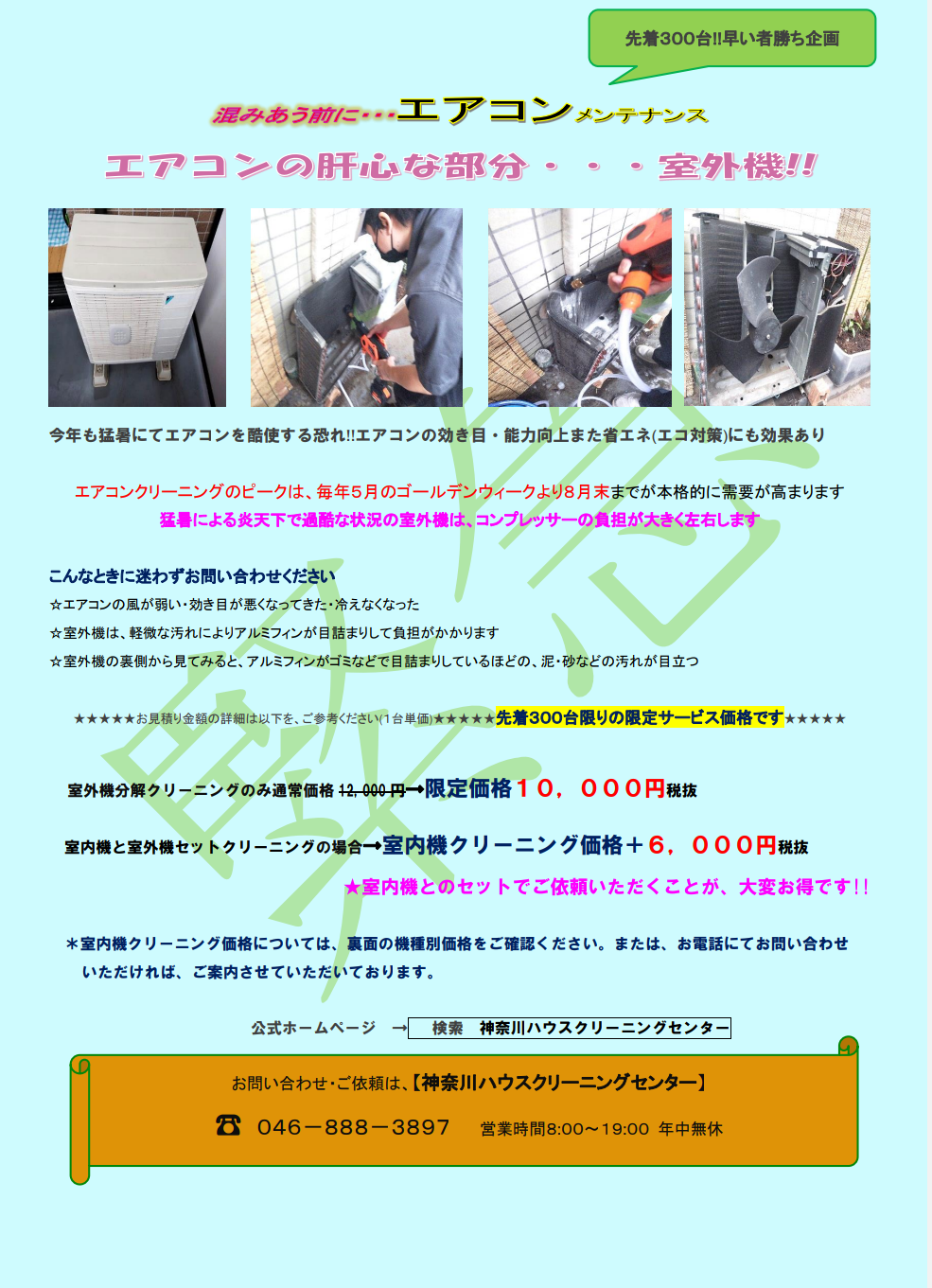 神奈川ハウスクリーニングセンターでは、5月末までエアコンクリーニングのお客様には2週間待ちとなっております。